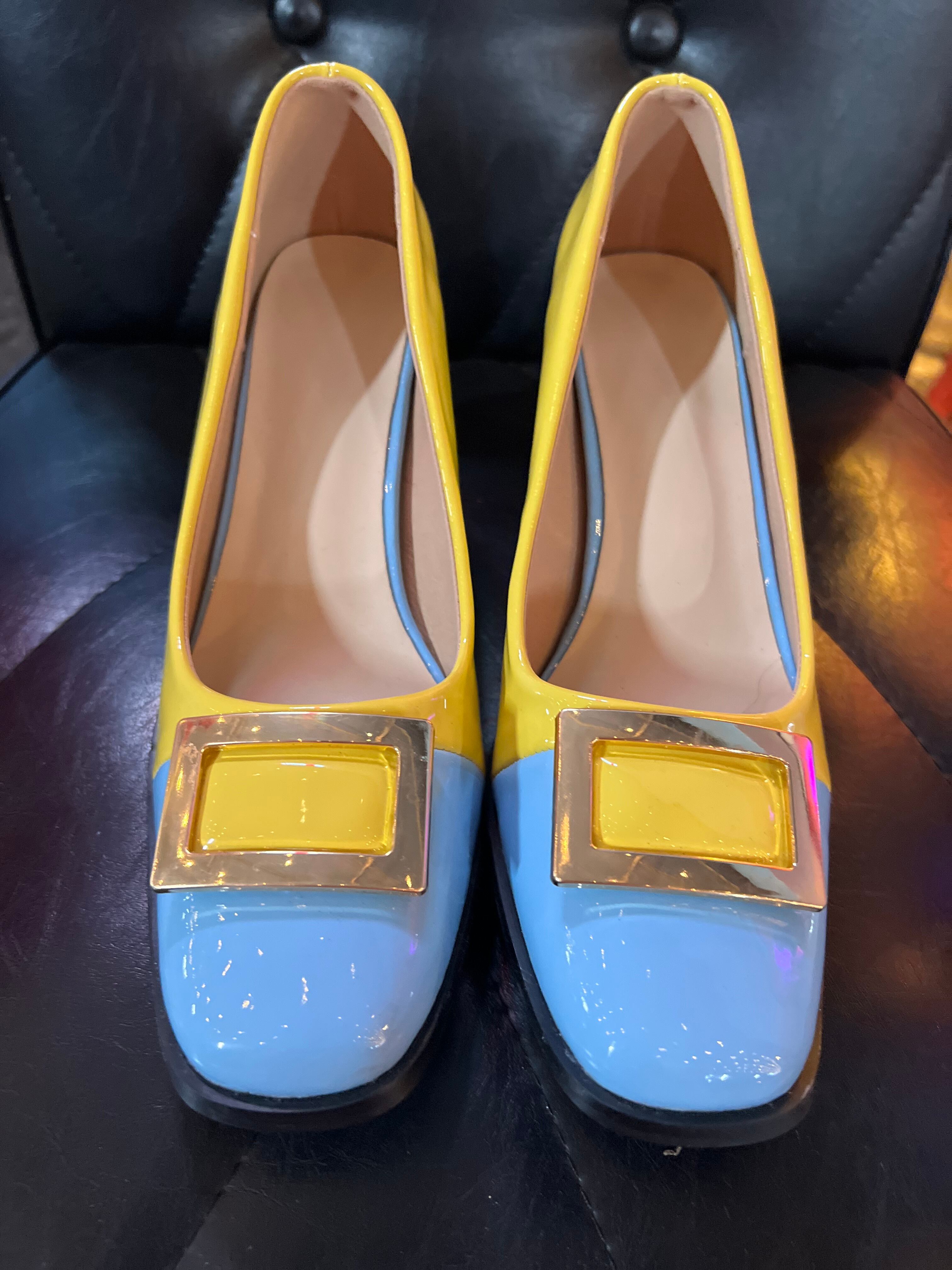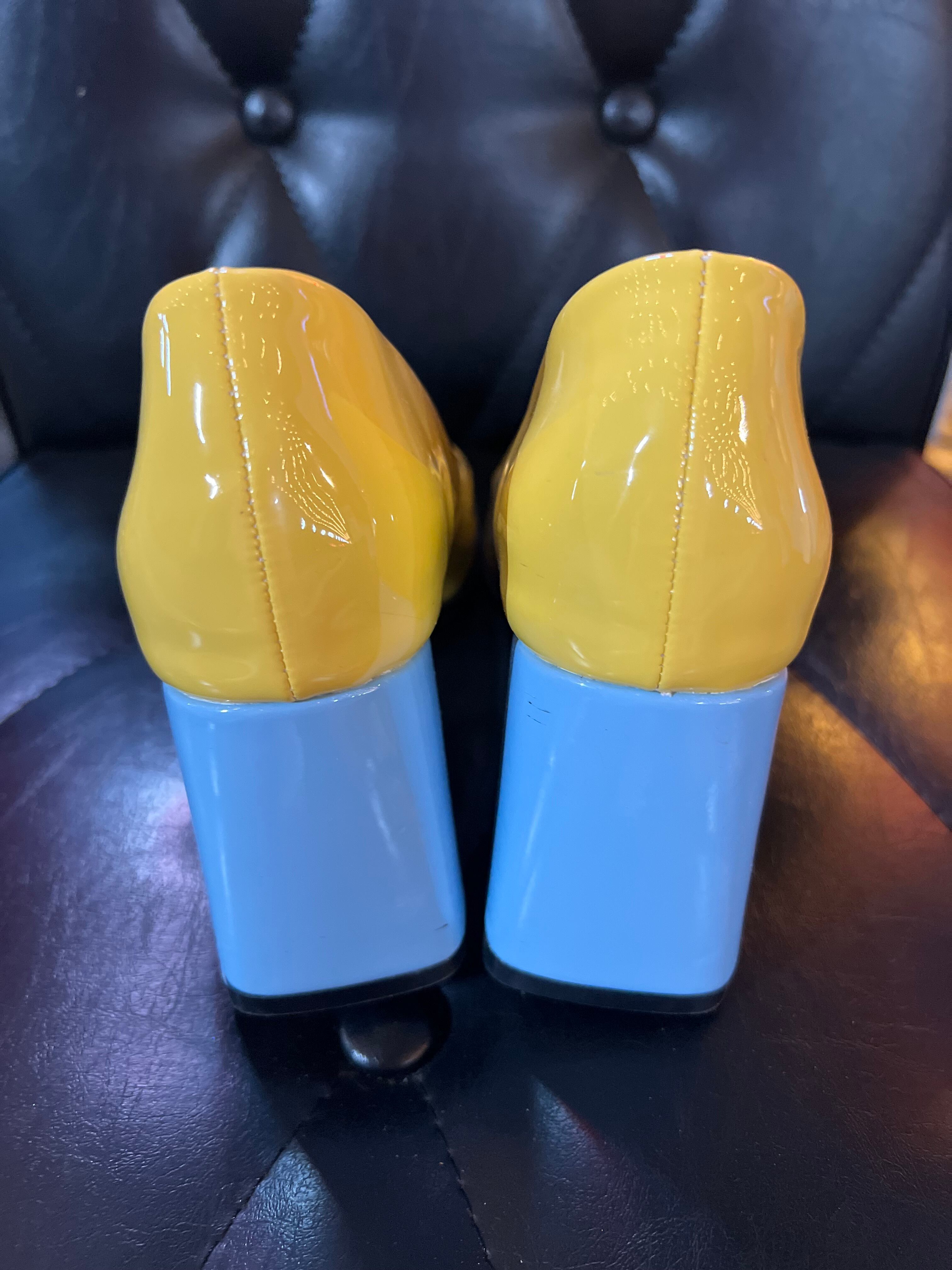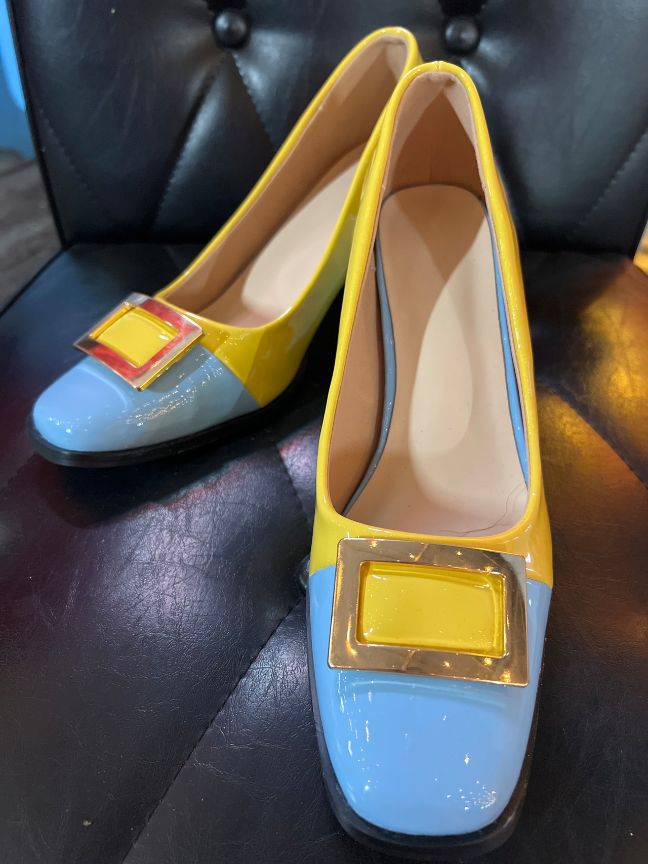 2カラーブロックチャンキーヒールの